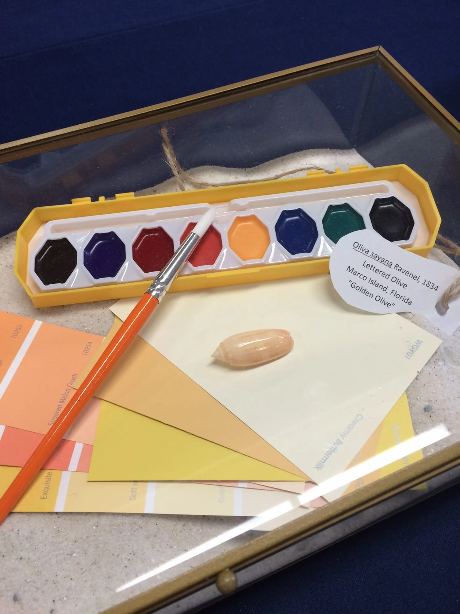 Golden olive creatively displayed at the Sanibel Shell Show.