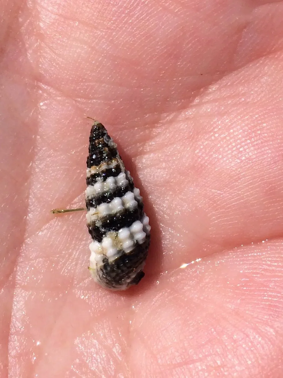 It’s the largest one I’ve ever found in the Keys. There were plenty of mini shells like the one below right next to shore, too. Love the black and white coloring!